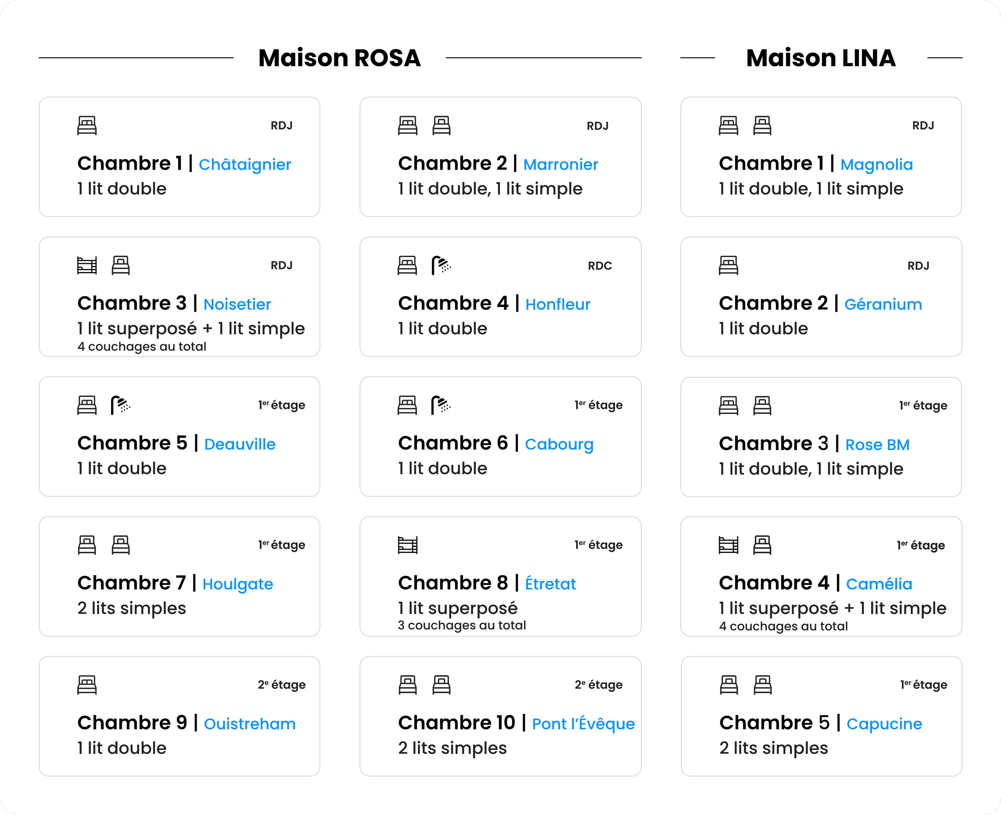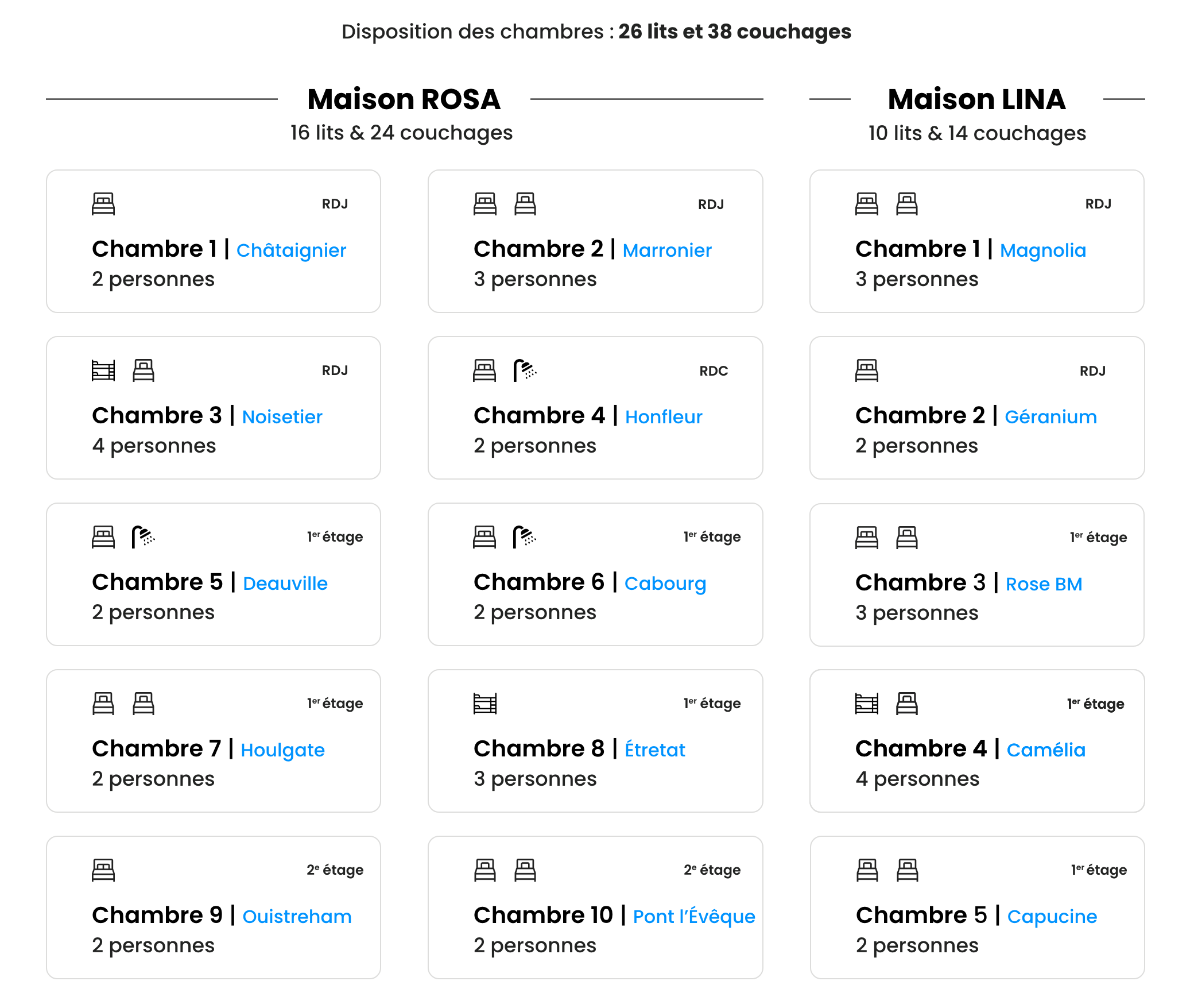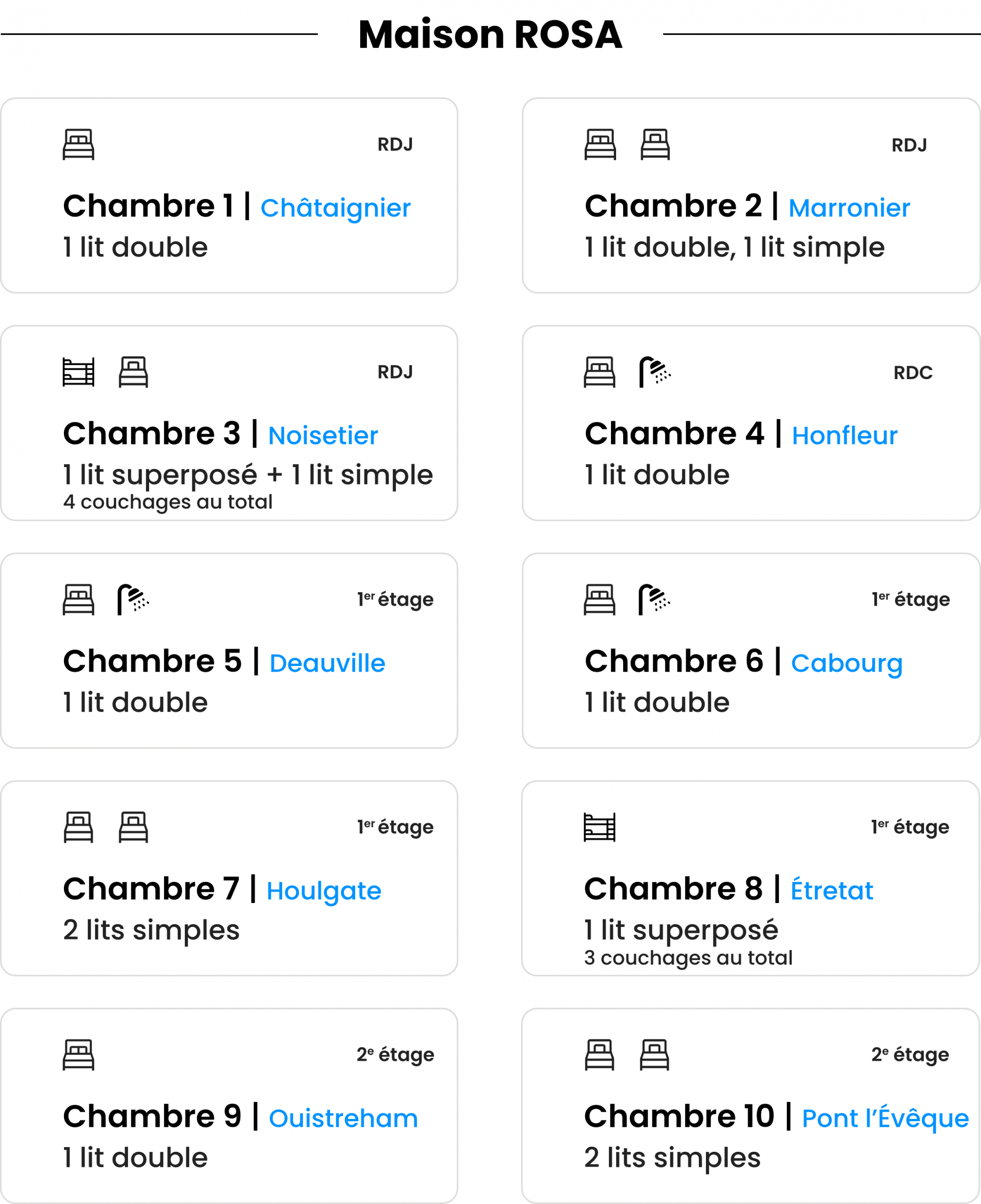 24 voyageurs • 10 chambres • 7 salles d'eau
