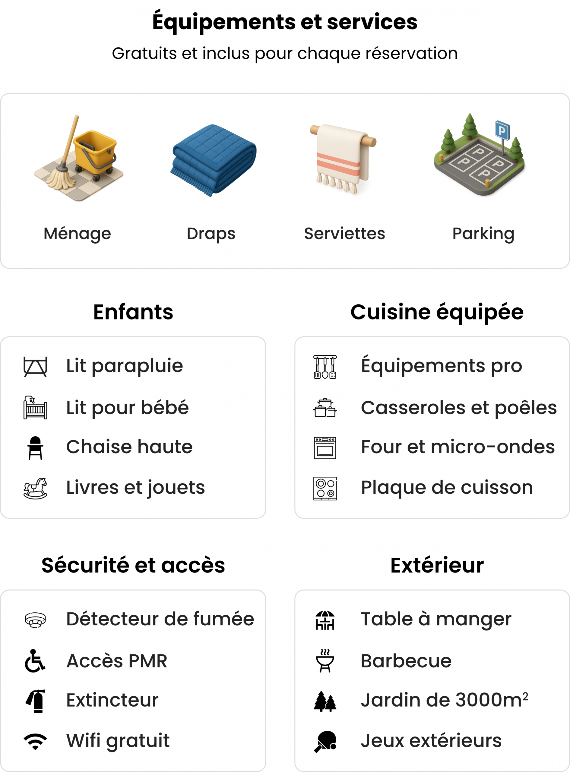 Services inclus à chaque réservation