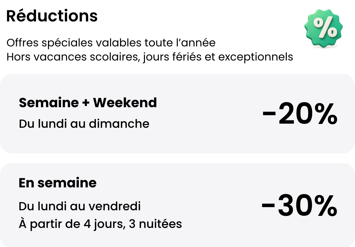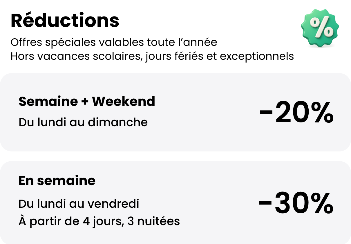 - Annulation gratuite 45 jours avant le début du séjour